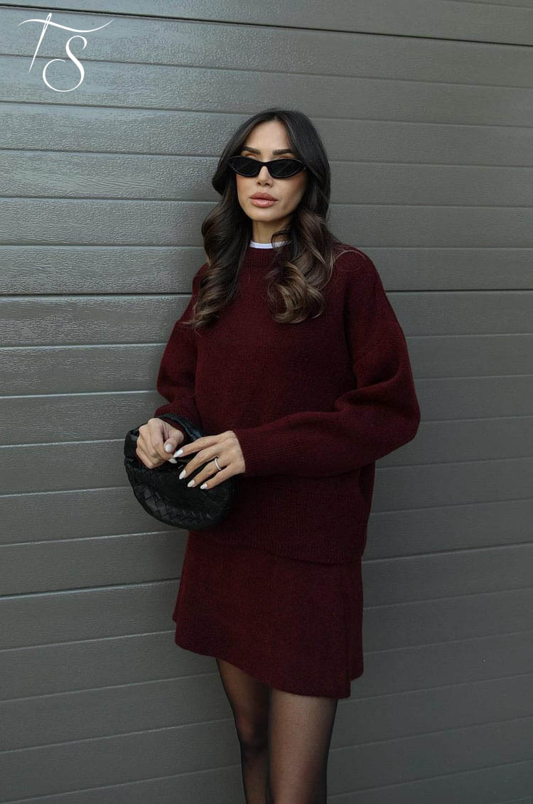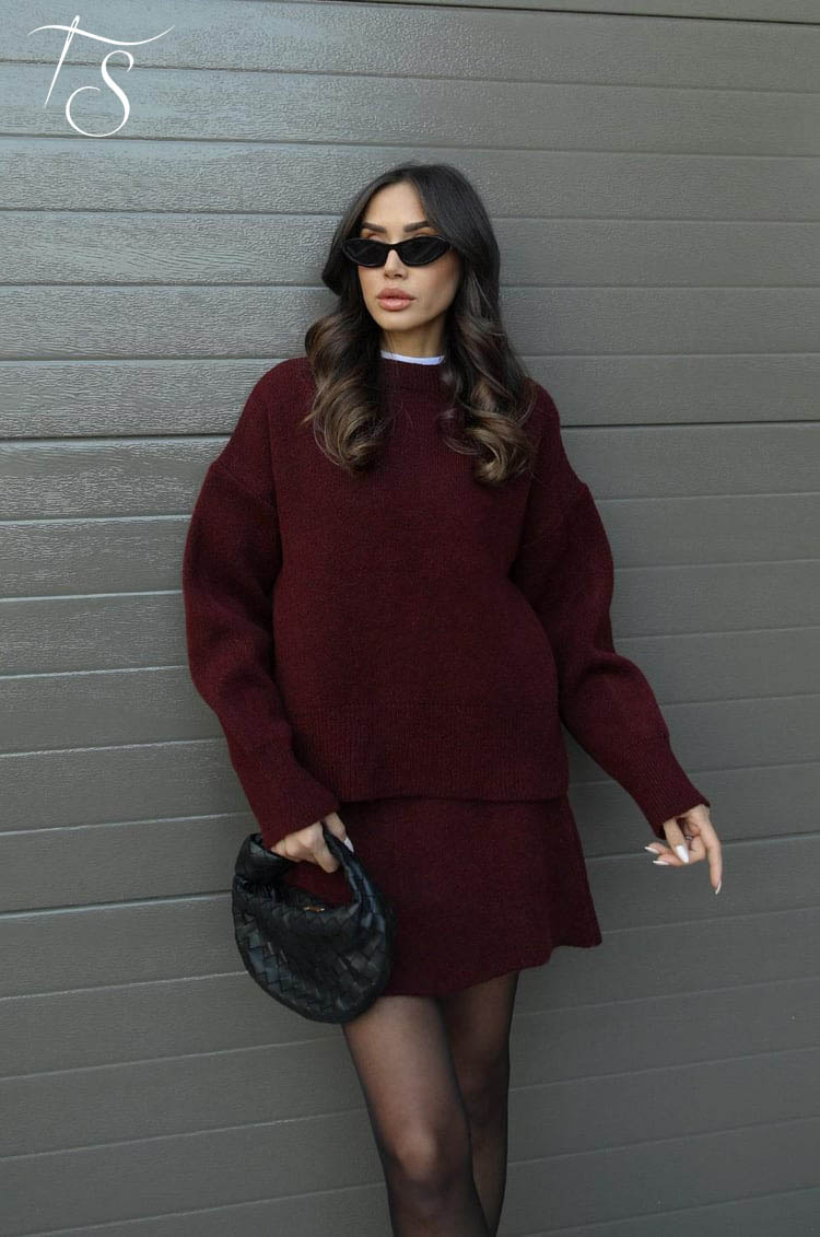 Luna incarna l'eleganza bordeaux rilassata - perfetto per momenti che richiedono stile senza sforzo.